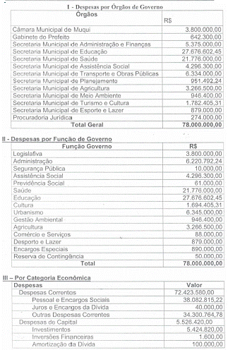 Art. 1° Fica aprovado o Orçamento Geral do Município de Muqui, Estado do Espírito Santo para o exercício financeiro de 2025, discriminado pelos anexos integrantes desta Lei que estima a receita e fixa a despesa em R$ 78.000.000,00 (setenta e oito milhões de reais).