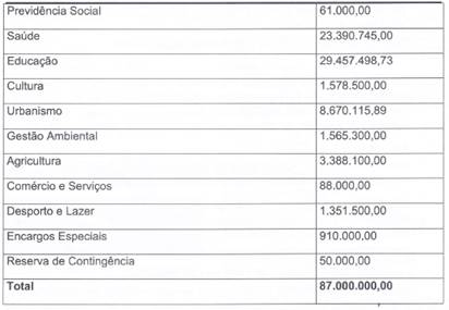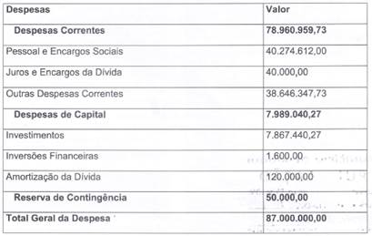 fixa a despesa em R$ 87.000.000,00 (oitenta e sete milhões de reais).